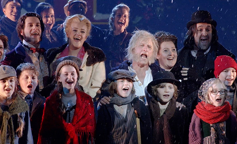 Le spectacle réunissait une vaste distribution, des costumes d’époque élaborés et des décors minutieusement conçus qui redonnaient vie au Londres victorien. De plus, des techniques de mise en scène innovantes et des effets lumineux sophistiqués permettaient des transitions fluides entre les festivités et les apparitions inquiétantes des trois fantômes. Le compositeur belge renommé Dirk Brossé a signé la partition musicale avec de grands arrangements orchestraux. Sa musique a ajouté une profondeur émotionnelle et une dimension majestueuse à chaque scène, capturant ainsi à la fois la chaleur et le suspense de l’histoire.